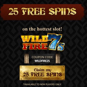 • 25 Free Spins No Deposit — Code: WILDFIRE25; applies exclusively to the Wild Fire 7s slot. Wagering requirement typically 30x bonus winnings, maximum cashout around $100 (some sources note 10x in older listings, but 30x is more commonly reported). Restricted to new players only; standard terms prohibit consecutive no-deposit bonuses without an intervening deposit. Verified through multiple affiliate and bonus listing sites as active in recent promotions—players should redeem the code in the cashier section after signup and confirm current availability directly on the official site.