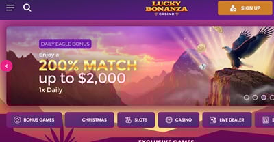 Lucky Bonanza Casino is a crypto-friendly offshore online casino aimed mainly at US and Canadian players. It stands out for its extremely high-percentage welcome bonus, daily reload offers and fast cryptocurrency payouts. The platform is fully mobile-optimized, supports a wide range of crypto and card banking options, and features hundreds of slots alongside table games and live casino titles from multiple software providers.